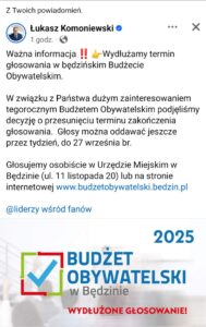 BUDŻET OBYWATELSKI – GŁOSOWANIE WYDŁUŻONE