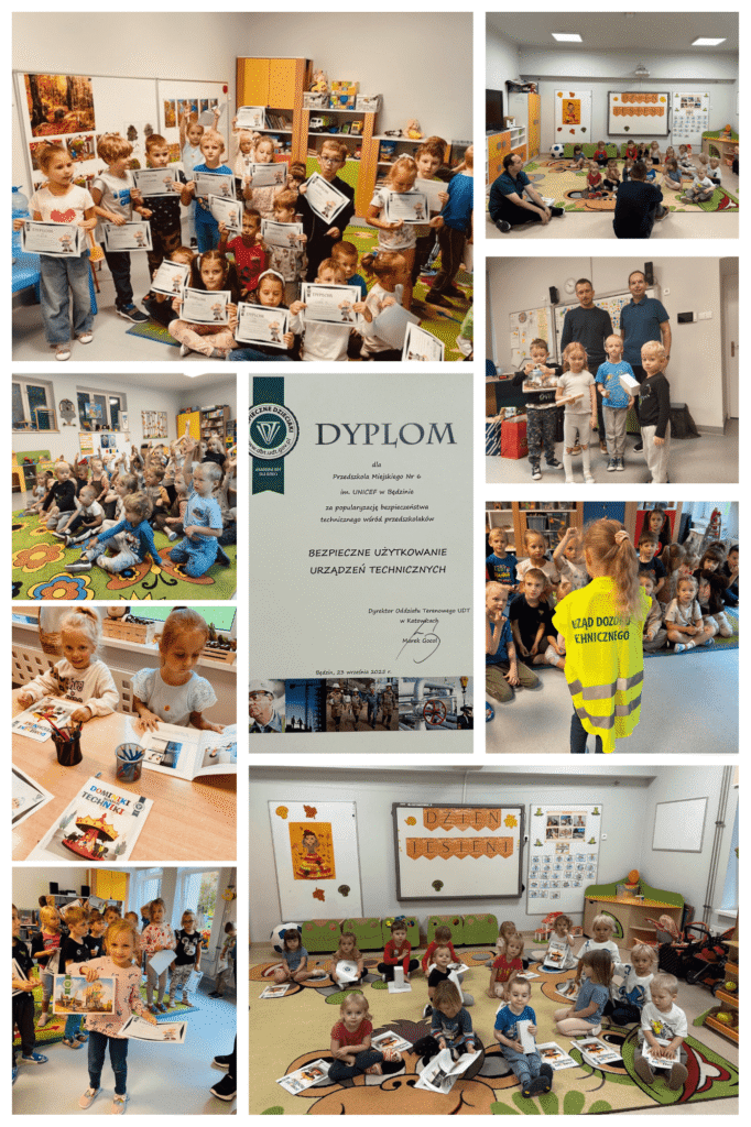 Wszystkie grupy przedszkolne wzięły udział w wyjątkowych zajęciach zorganizowanych w ramach współpracy z Dziecięcą Akademią Urzędu Dozoru Technicznego. Spotkanie poświęcone było tematowi bezpieczeństwa podczas korzystania z urządzeń technicznych.