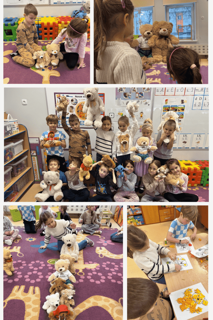 W grupie „Motylki” zrobiło się dziś wyjątkowo przytulnie! Dzieci przyniosły swoje ukochane pluszaki i z dumą o nich opowiadały. Każdy miś okazał się wyjątkowy i miał swoją małą historię. Podczas zajęć matematycznych dzieci klasyfikowały i mierzyły misie, a następnie z dużym zaangażowaniem wykonały pracę plastyczną – własnego misia pełnego kolorów i fantazji . To był miękki, misiowy i bardzo radosny dzień!🧸
