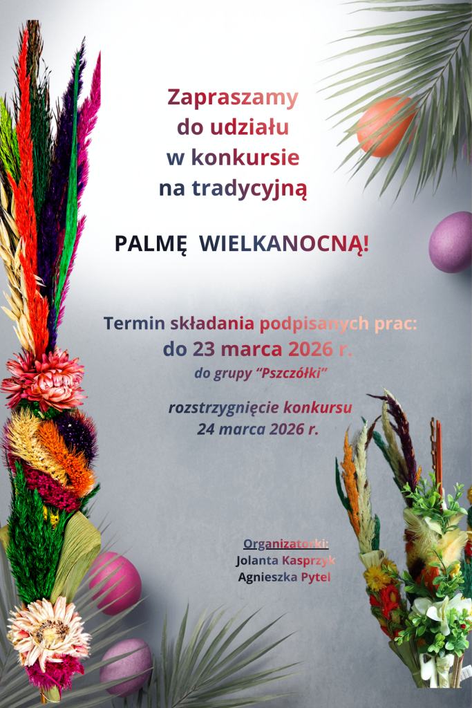 7. Termin i miejsce: Palmy należy dostarczyć do grupy „Pszczółki” w terminie do 23 marca 2026 r.