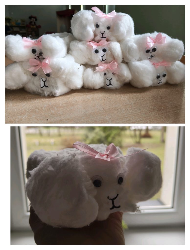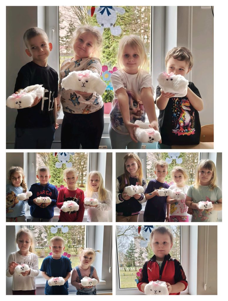 Przedszkolaki z grupy Krasnale wykonały pracę plastyczną – urocze Baranki z wykorzystaniem waty oraz założyły hodowlę rzeżuchy.