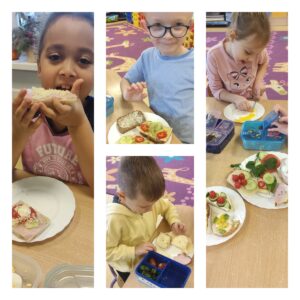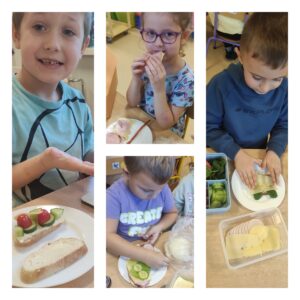 Dzisiaj nasze przedszkolaki podjęły wyzwanie pod hasłem „Robimy zdrowe kanapki”.