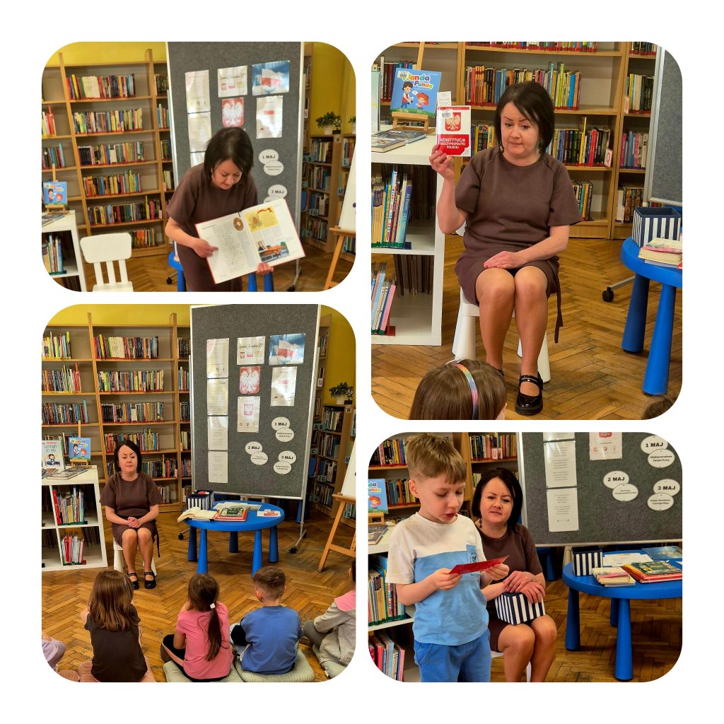 Grupa „Motyle” wybrała się do Miejskiej Biblioteki – Filii Ksawera. Podczas wizyty dzieci miały okazję uczestniczyć w ciekawych zajęciach poświęconych zbliżającym się świętom majowym.