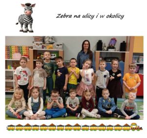 Dzieci z grupy Pszczółek ramach projektu „Zebra na ulicy i w okolicy” zrealizowały zajęcia dotyczące bezpieczeństwa w przedszkolu. Wyruszyliśmy w rytmie piosenki „jedzie pociąg z daleka” w nasz przedszkolny świat. Odgadywaliśmy zagadki, rozmawialiśmy o tym, co znajduje się w przedszkolu, rozwiązywaliśmy quiz. Przypominaliśmy sobie co można, a czego absolutnie w przedszkolu robić nie wolno. Wiemy gdzie i jak należy się zachować. Na koniec każdy z nas dostał naklejkę z Zebrą.