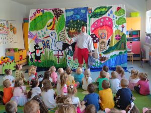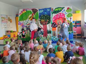 9 kwietnia 2024                      roku gościliśmy w Przedszkolu Miejskim nr 6 im.                      UNICEF w Będzinie aktorów z Agencji Artystycznej                      Kanon z Krakowa,  którzy zaprezentowali naszym                      dzieciom zabawne  przedstawienie pt. „Pierwszy Dzień                      Wiosny”.