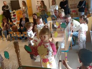 W czasie zajęć dzieci zaprezentowały nabyte wiadomości i umiejętności z tematyki jesiennej.